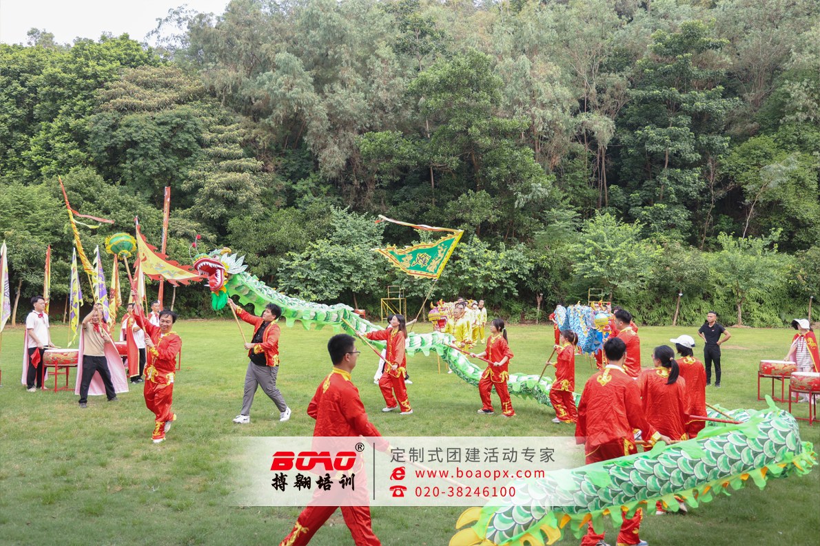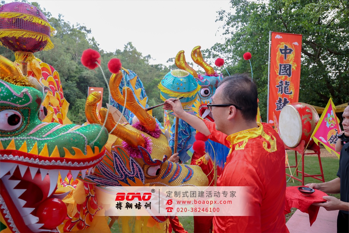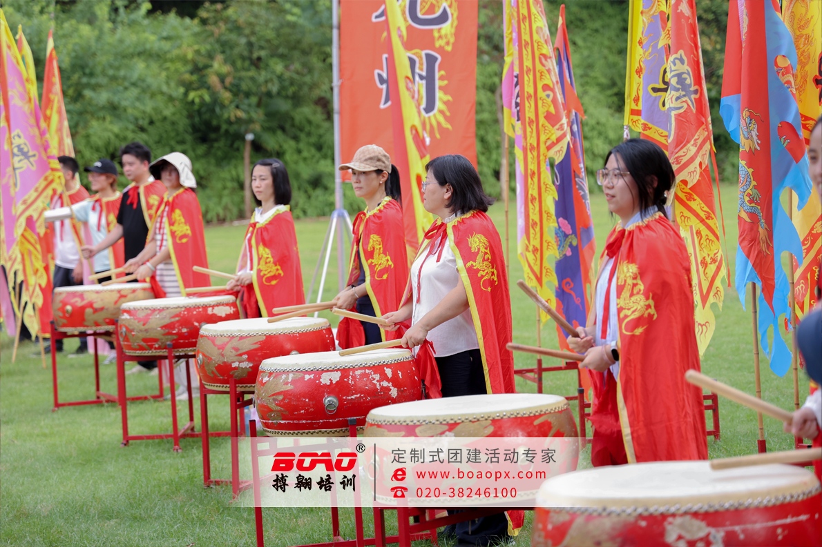 本次活動(dòng)精彩環(huán)節(jié)也環(huán)環(huán)相扣:1.三陣合一:從“部門墻”到“共同體”;活動(dòng)將全員分為旗陣、鼓陣、龍陣三大方陣進(jìn)行專項(xiàng)練習(xí)。旗手揮旗定調(diào),鼓手擊鼓壯威,龍陣舞動(dòng)乾坤。這種分工并非割裂,而是通過搏翱廣州拓展團(tuán)建公司教練設(shè)計(jì)的“節(jié)奏對(duì)話”機(jī)制,讓三方陣在練習(xí)中必須時(shí)刻關(guān)注彼此的節(jié)奏與動(dòng)作,最終在大匯演環(huán)節(jié)實(shí)現(xiàn)無縫融合。這不僅是對(duì)協(xié)作能力的極致考驗(yàn),更是對(duì)“一個(gè)團(tuán)隊(duì),一個(gè)目標(biāo)”的生動(dòng)詮釋。2.點(diǎn)睛誓師:領(lǐng)導(dǎo)力與執(zhí)行力的同頻共振;在活動(dòng)高潮部分,公司領(lǐng)導(dǎo)班子共飲誓師酒,以酒為誓,凝聚人心;隨后,最高領(lǐng)導(dǎo)用紅朱砂為龍點(diǎn)睛。這一極具傳統(tǒng)儀式感的環(huán)節(jié),象征著領(lǐng)導(dǎo)層為團(tuán)隊(duì)注入靈魂與方向,也寓意著全體員工在領(lǐng)導(dǎo)的帶領(lǐng)下“畫龍點(diǎn)睛”,業(yè)務(wù)開展將更有神采、更有力量。這是領(lǐng)導(dǎo)力可視化、情感化的直接傳遞。3.視聽盛宴:文化自信與品牌氣勢(shì)的雙重輸出;統(tǒng)一的戰(zhàn)服、震天的鼓聲、翻飛的龍旗,共同構(gòu)成了一場(chǎng)極具視覺沖擊力的企業(yè)文化秀。這不僅是一次內(nèi)部團(tuán)建,更是一次對(duì)外展示人保團(tuán)隊(duì)鐵軍風(fēng)采的品牌事件,極大地提升了團(tuán)隊(duì)的自豪感與外部形象。